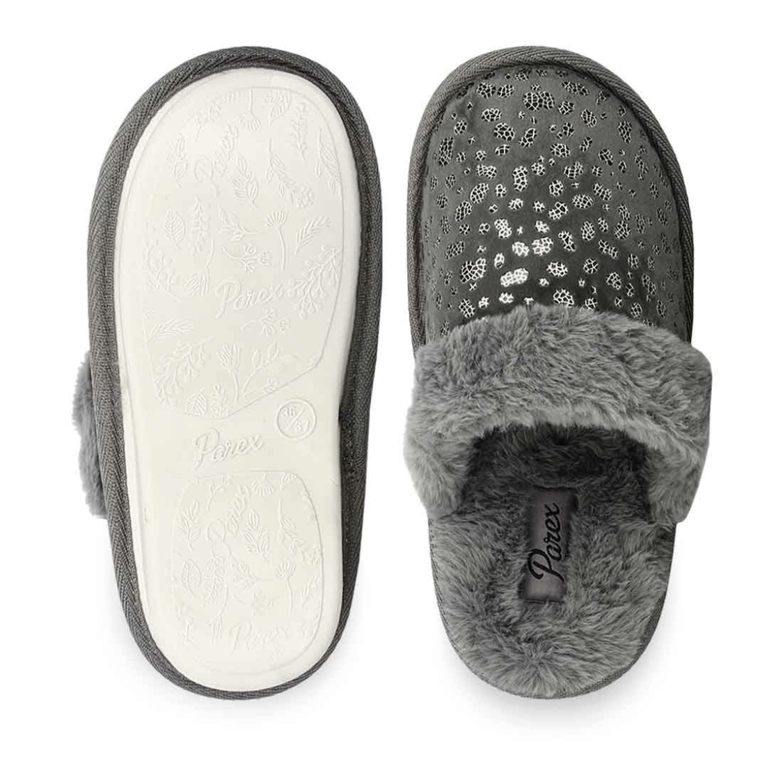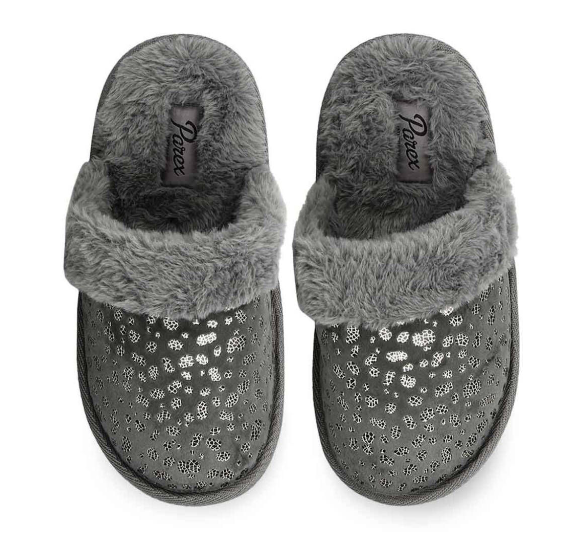 Ζεστές παντόφλες σπιτιού με γούνινη επένδυση και σχέδιο με μεταλλιζέ λεπτομέρειες στο πάνω μέρος. Ιδανικό ύψος τακουνιού που προσφέρει άνεση και σταθερότητα. Αντιολισθητική σόλα. Πλένονται εύκολα στο πλυντήριο στους 30°C.