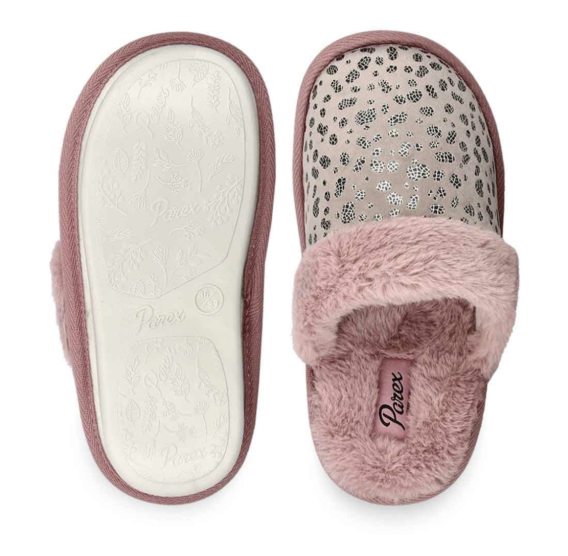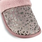 Ζεστές παντόφλες σπιτιού με γούνινη επένδυση και σχέδιο με μεταλλιζέ λεπτομέρειες στο πάνω μέρος. Ιδανικό ύψος τακουνιού που προσφέρει άνεση και σταθερότητα. Αντιολισθητική σόλα. Πλένονται εύκολα στο πλυντήριο στους 30°C.