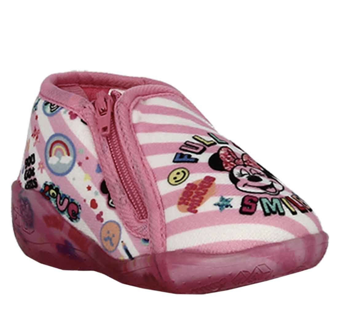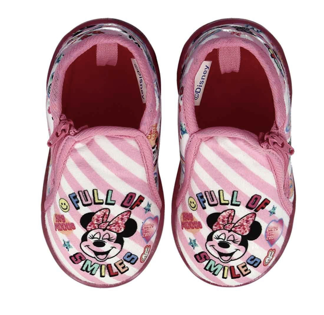 Παιδικές παντόφλες σπιτιού της εταιρείας Disney με τη Minnie mouse. Ένα σχέδιο με έντονο φούξια χρώμα . Κλείσιμο με φερμουάρ για τέλεια εφαρμογή.