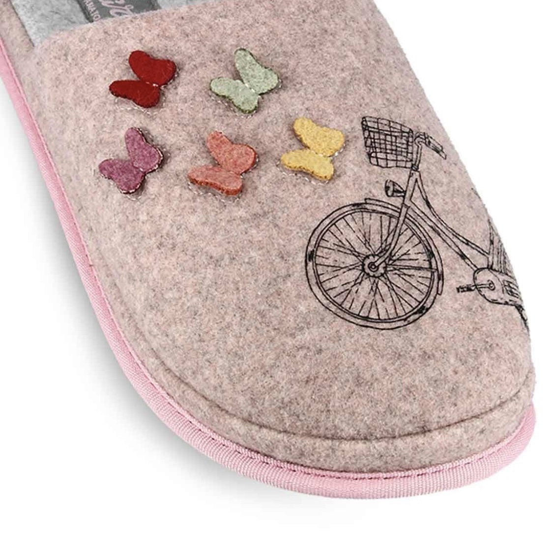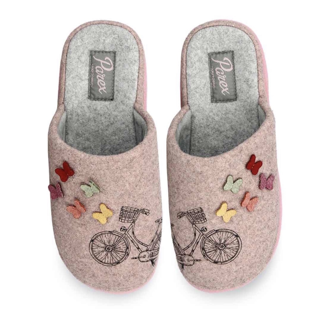 Γυναικείες παντόφλες σπιτιού Parex με απλικέ πεταλούδες και ποδήλατο στο πάνω μέρος.