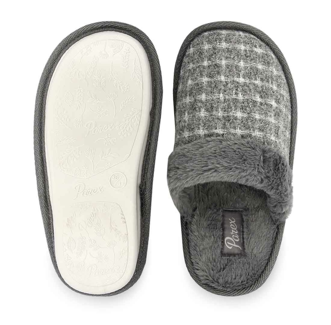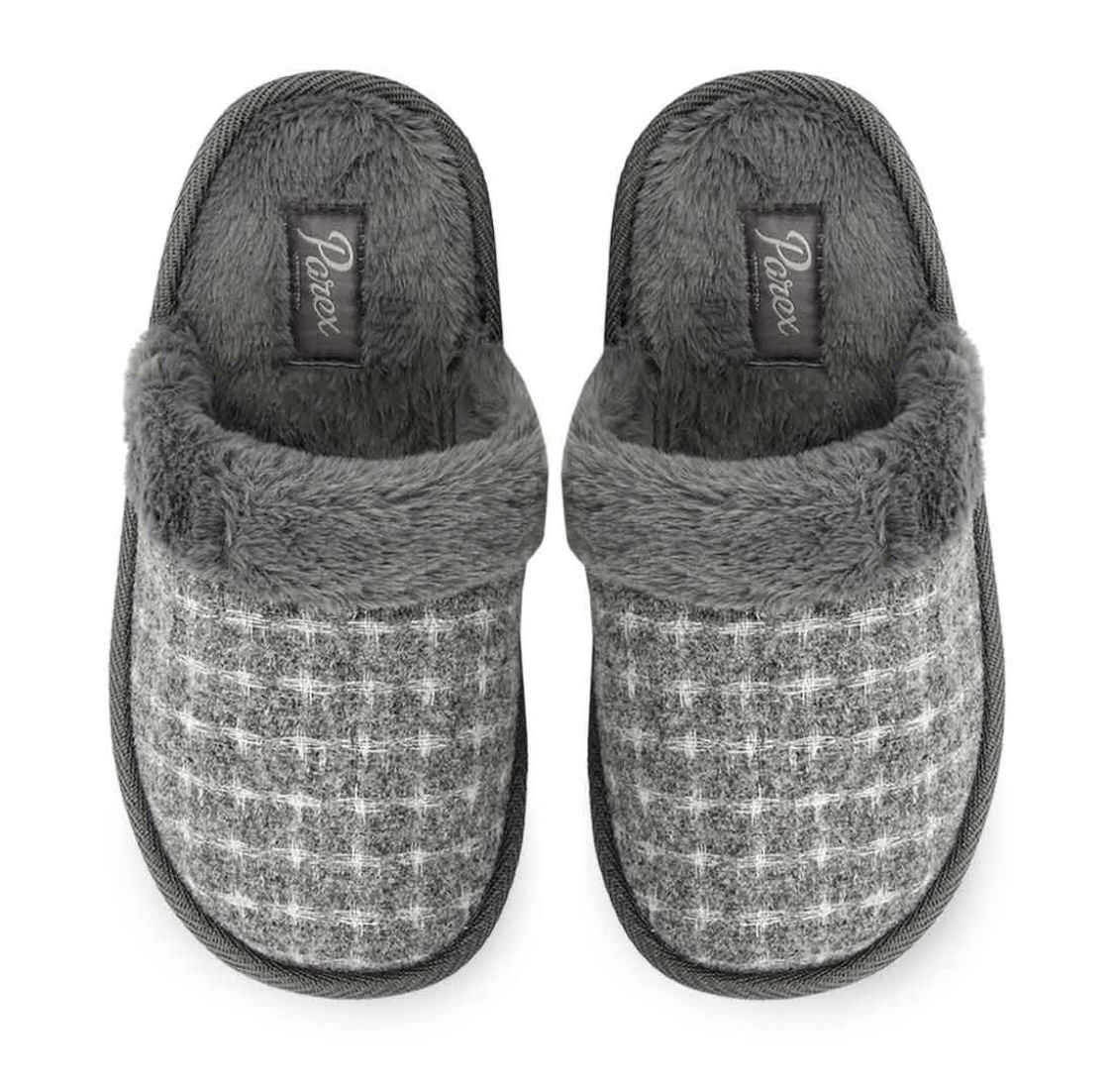 Ζεστές παντόφλες σπιτιού με γούνινη επένδυση και μάλλινο σχέδιο εξωτερικά. Ιδανικό ύψος τακουνιού που προσφέρει άνεση και σταθερότητα. Αντιολισθητική σόλα. Πλένονται εύκολα στο πλυντήριο στους 30°C.