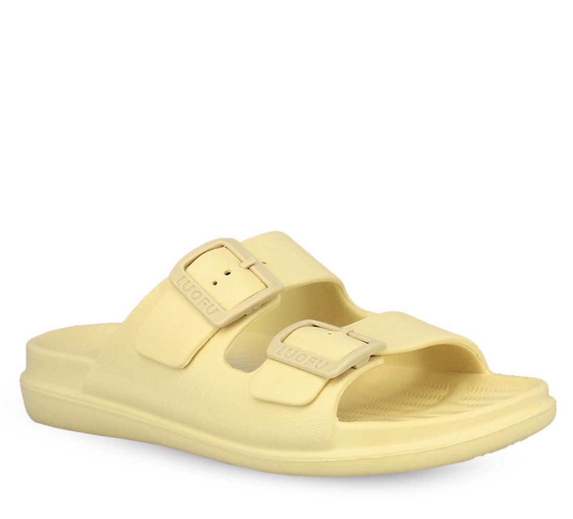 Βάλτε χρώμα στη ζωή σας,απίθανη σαγιονάρα με δύο οριζόντια λουράκια και κούμπωμα με εγκράφα. Μοδάτο σχέδιο με αναπαυτικό εσωτερικό πάτο για να τη φοράτε όλη την ημέρα.