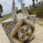 Υφασμάτινη τσάντα παραλίας με διακοσμητικά κοχύλια.