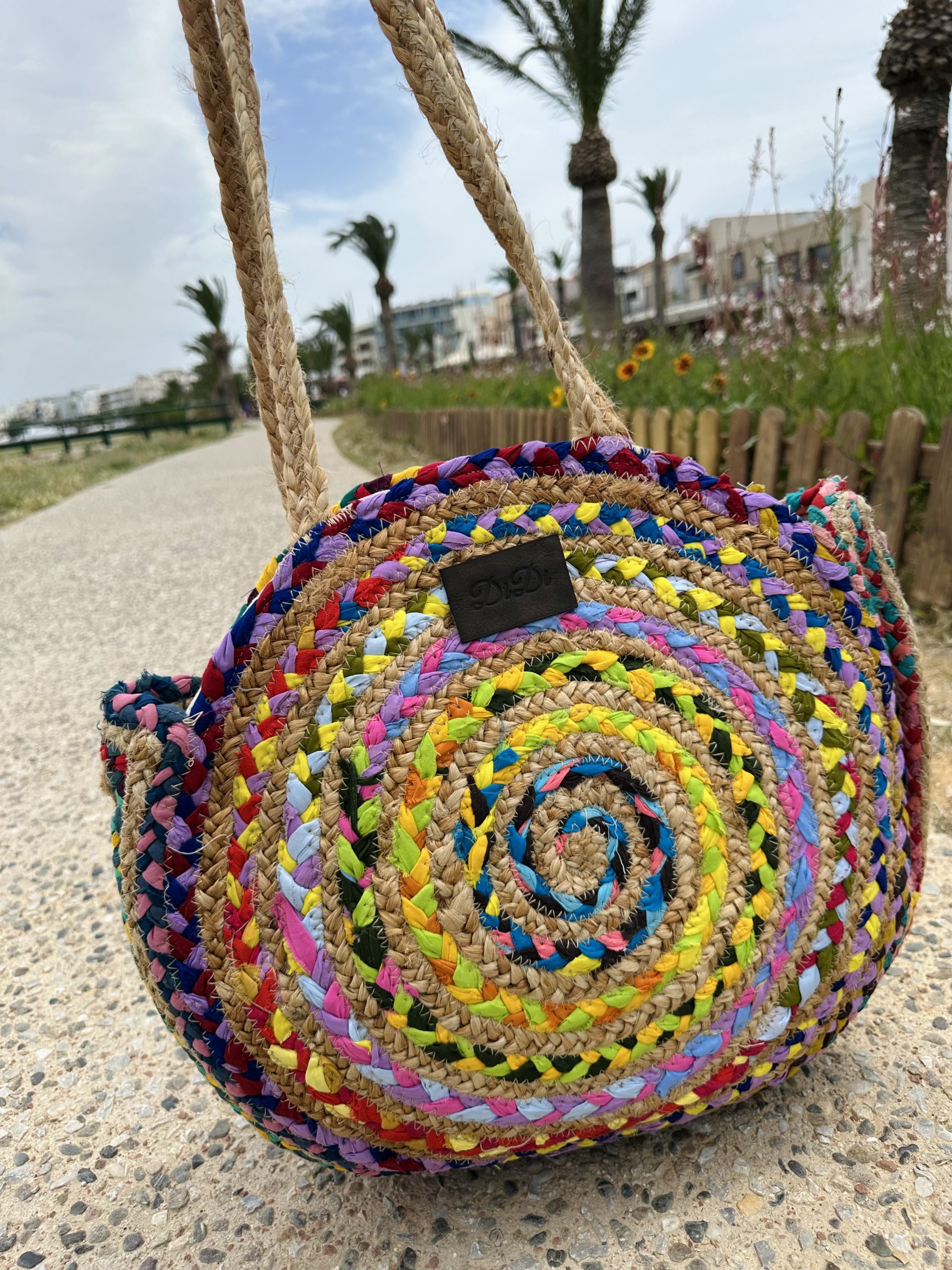 Τσάντα παραλίας από σχοινί και υφάσματα σε διάφορα χρώματα.